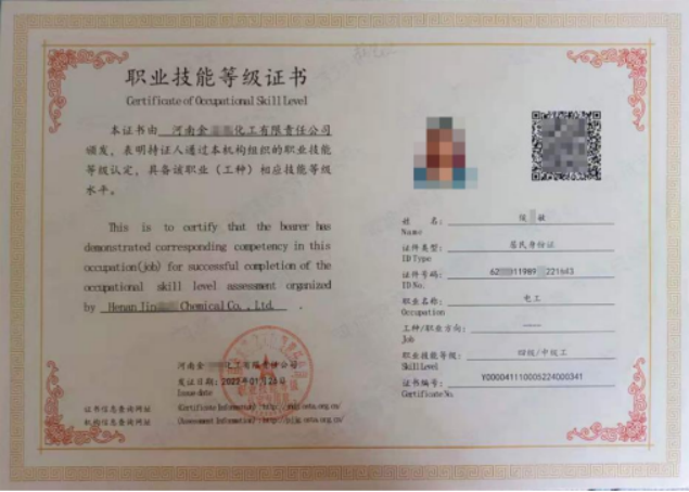 2022年1月26日化工企业发放的电工证书
